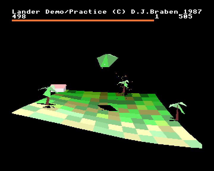 Unfortunately, in what has become a familiar problem since, the design that had worked so well for Meteors didn’t quite take to the added dimension. Although successful as a graphical demonstration, Lander couldn’t really hold the player’s interest. There was a lot of potential there, and the ship and landscape were impressive, but it needed more game.