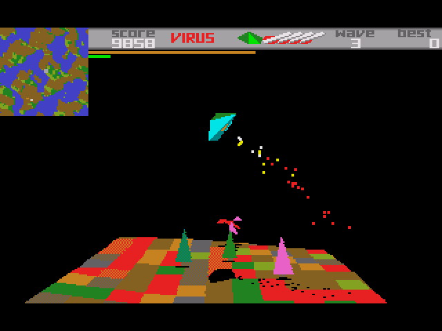 With the conversion to the sixteen-bit machines Braben took the chance to rename the game Virus. He’d never been keen on Zarch, claiming it ‘sounds like a soap powder’