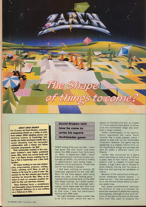 “What happened is that I did a game called Lander, which was given away free with the Archimedes. This had to be ready in double-quick time because it had to go on a disk and be duplicated to ship with the machine.”