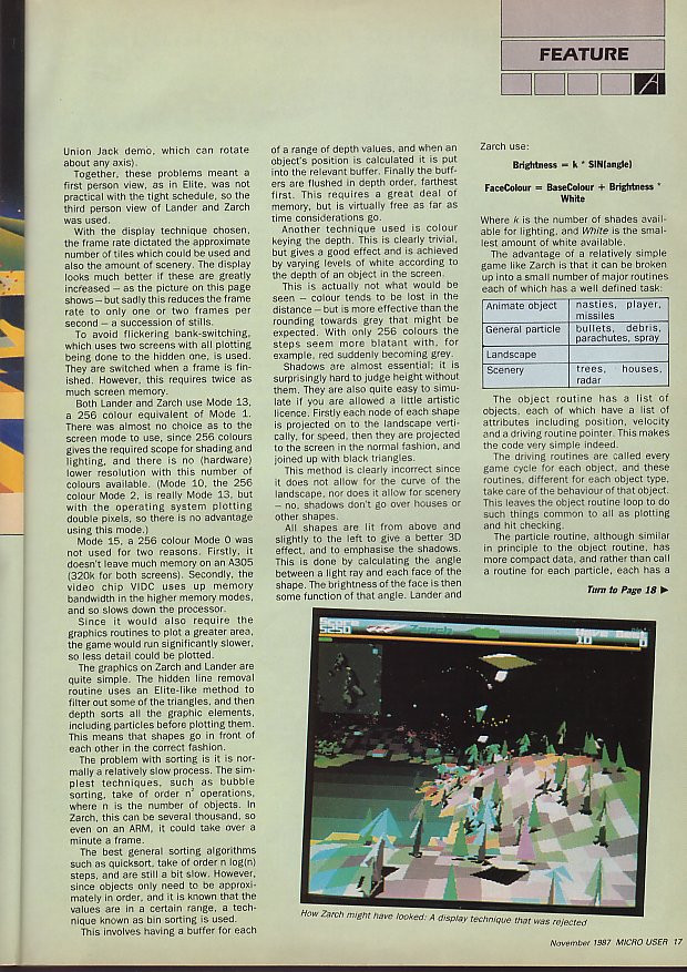 Zarch’s elegant simplicity became not just a demonstration of the Archimedes power but a flag bearer for the new generation of 3D games. It gave us hope and reassurance. It was going to be all right. You could combine gameplay and stunning graphics.